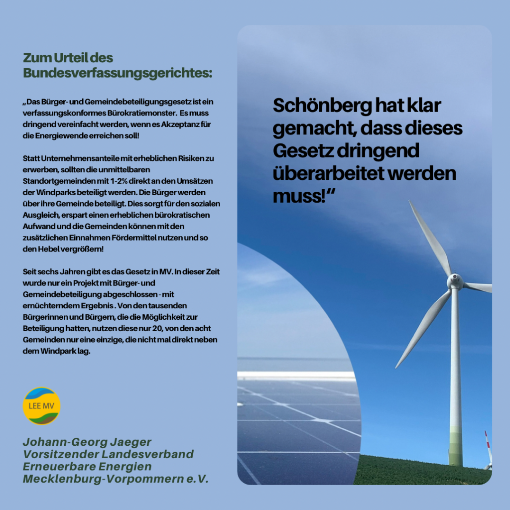 LEE MV LEKA MV . Der Landesverband Erneuerbare Energien MV und die Landesenergie- und Klimaschutzagentur MV laden Sie ein: Onlineinformationsveranstaltung „§6 EEG – Kommunale Beteiligung an Windenergie – und Photovoltaikfreiflächenprojekten“ „Faktenwissen und Informationsupdate in 60 ... Mehr