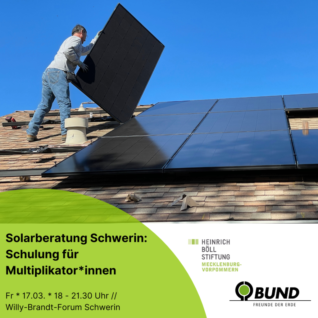 Heinrich Böll Stiftung MV und BUND MV . Die Heinrich-Böll-Stiftung MV und der BUND laden alle Interessierten ein, die ihre Nachbarn,Freund*innen und Kolleg*innen ehrenamtlich zu Solaranlagen beraten möchten. Aktuell planen viele Menschen die Errichtung einer Photovoltaikanlage, am Balkon ... Mehr