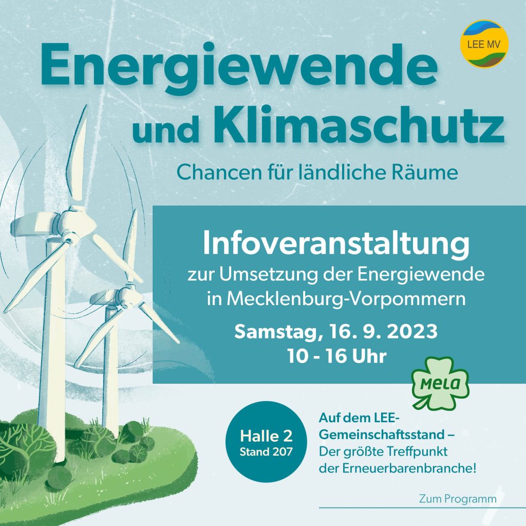 07.08.2024 . Erneuerbare Energien in Mecklenburg-Vorpommern auf dem Gemeinschaftsstand des LEE MV Mit unserem neuen offenen Messekonzept bieten wir Informationen zur Nutzung der Erneuerbaren Energien und zur Umsetzung der Energiewende in unserem ... Mehr
